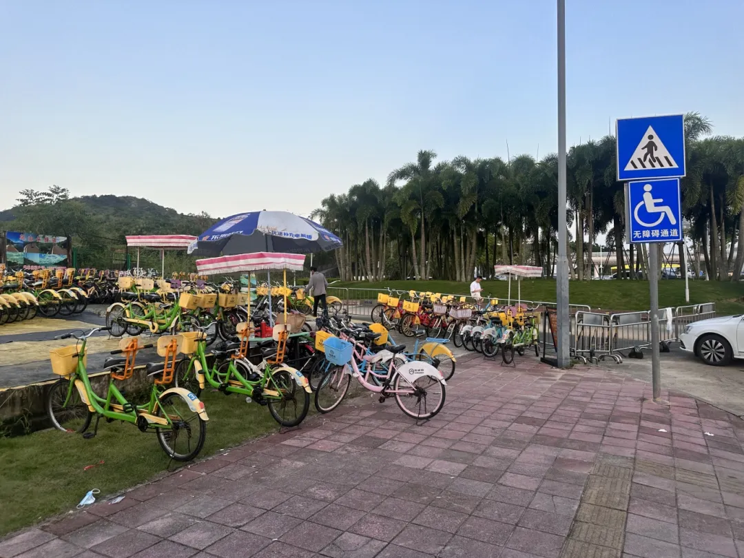 观光自行车租赁,为游客提供便捷、舒适、多样化出行选择。这类自行车通常由景区内的工作人员提供租赁服务,需要缴纳押金,并在规定地点归还自行车。